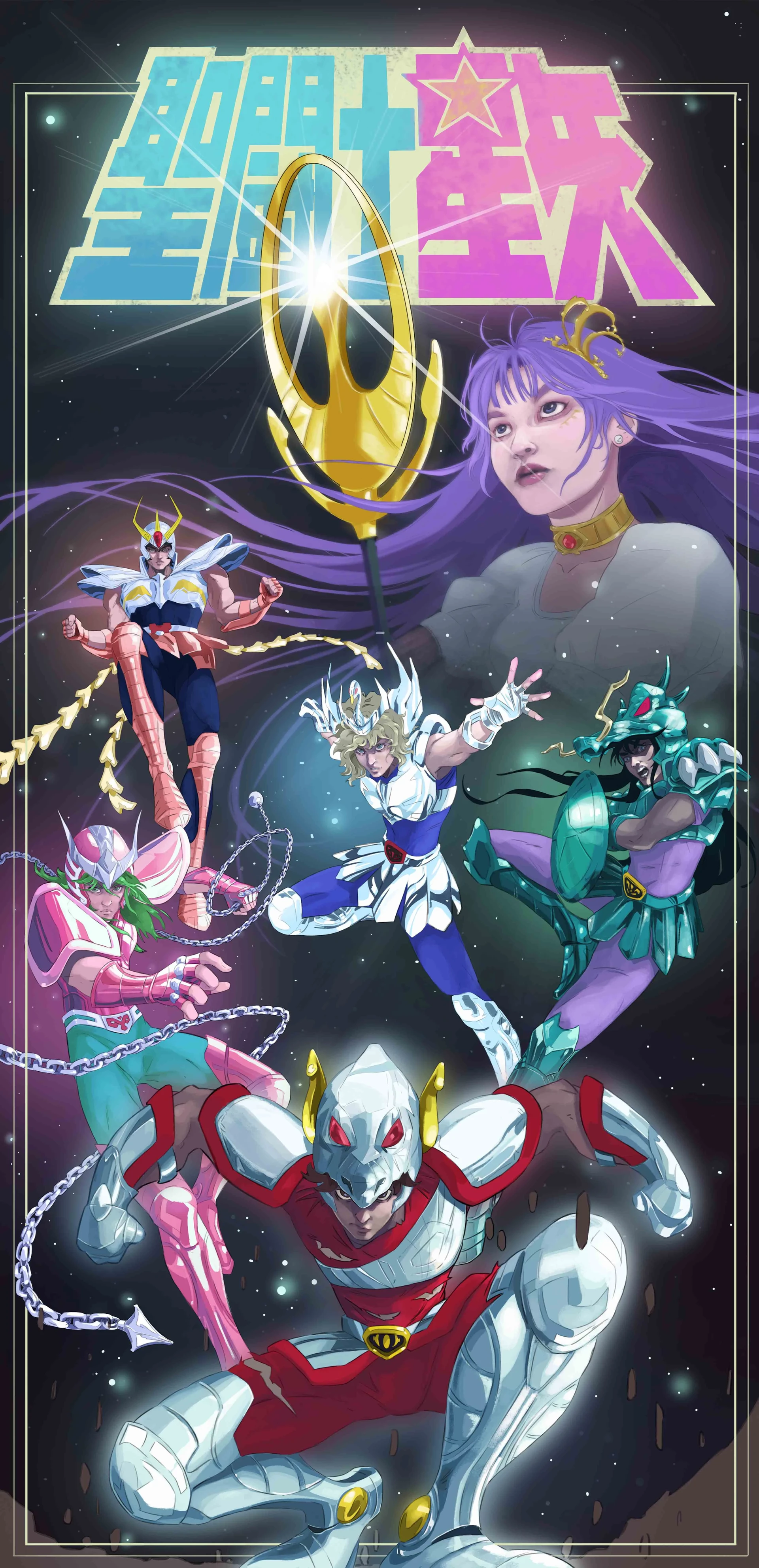Lors d'une recherche personnelle, mon moteur de recherche m'a sorti du chapeau des fanarts de nos héros en couples, réalisés pour la Saint-Valentin de cette année, par Léa T. Ils ne sont disponibles que sur la page Facebook de Saint Seiya Soul Of Gold France. Si vous êtes sur IOS, réactualisez la page d'accueil, faites de même pour consulter la section photos de la page, et scrollez. Les fanarts reprennent un motif similaire, des amoureux dos-à-dos, sur fond de paysages emblématiques à chacun. Je vous en donne la liste: