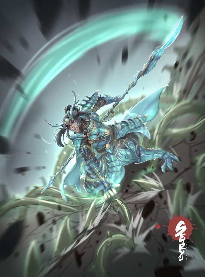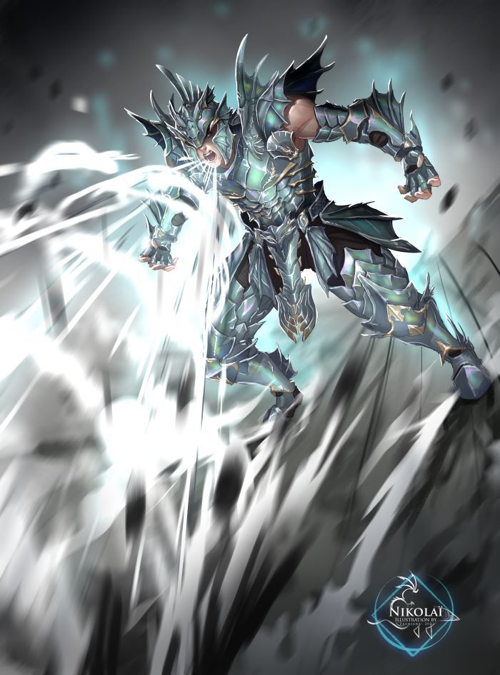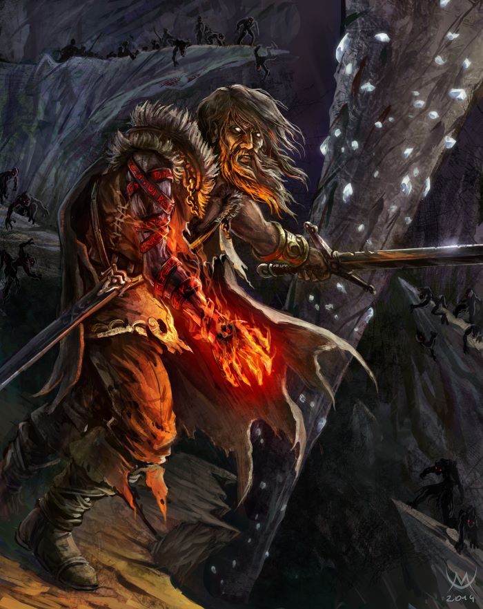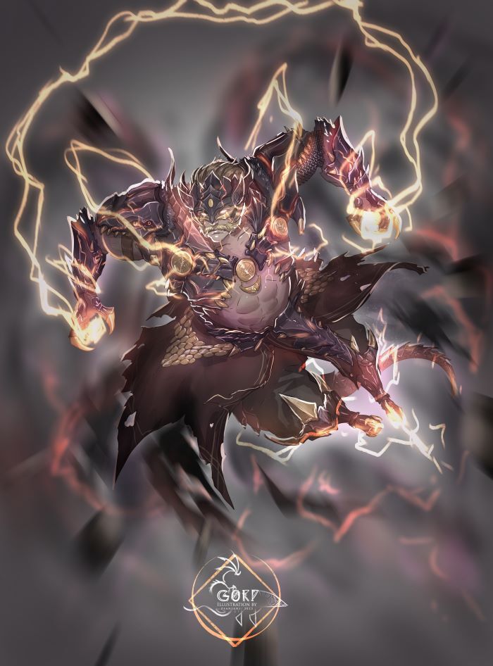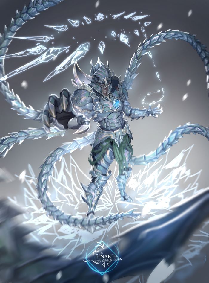 Petite lutte de kaijus entre les deux poids lourds :para1 . Invoquer le Kraken, il fallait bien au moins ça pour tenir tête au Loki-dragon. Pour tout avouer, je ne savais pas trop quoi créer comme arcane ultime à Einar et puis petit à petit l'idée de sa rencontre avec le Kraken en tant qu'entité s'est installé. J'ai l'impression que ça aura fait son effet :D