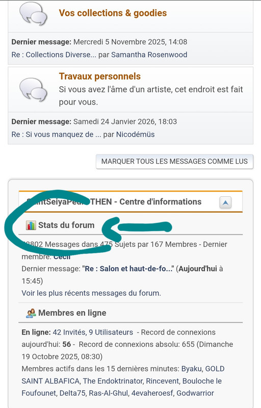 Ben en bas de la page d'accueil,  tu cliques sur STATS DU FORUM