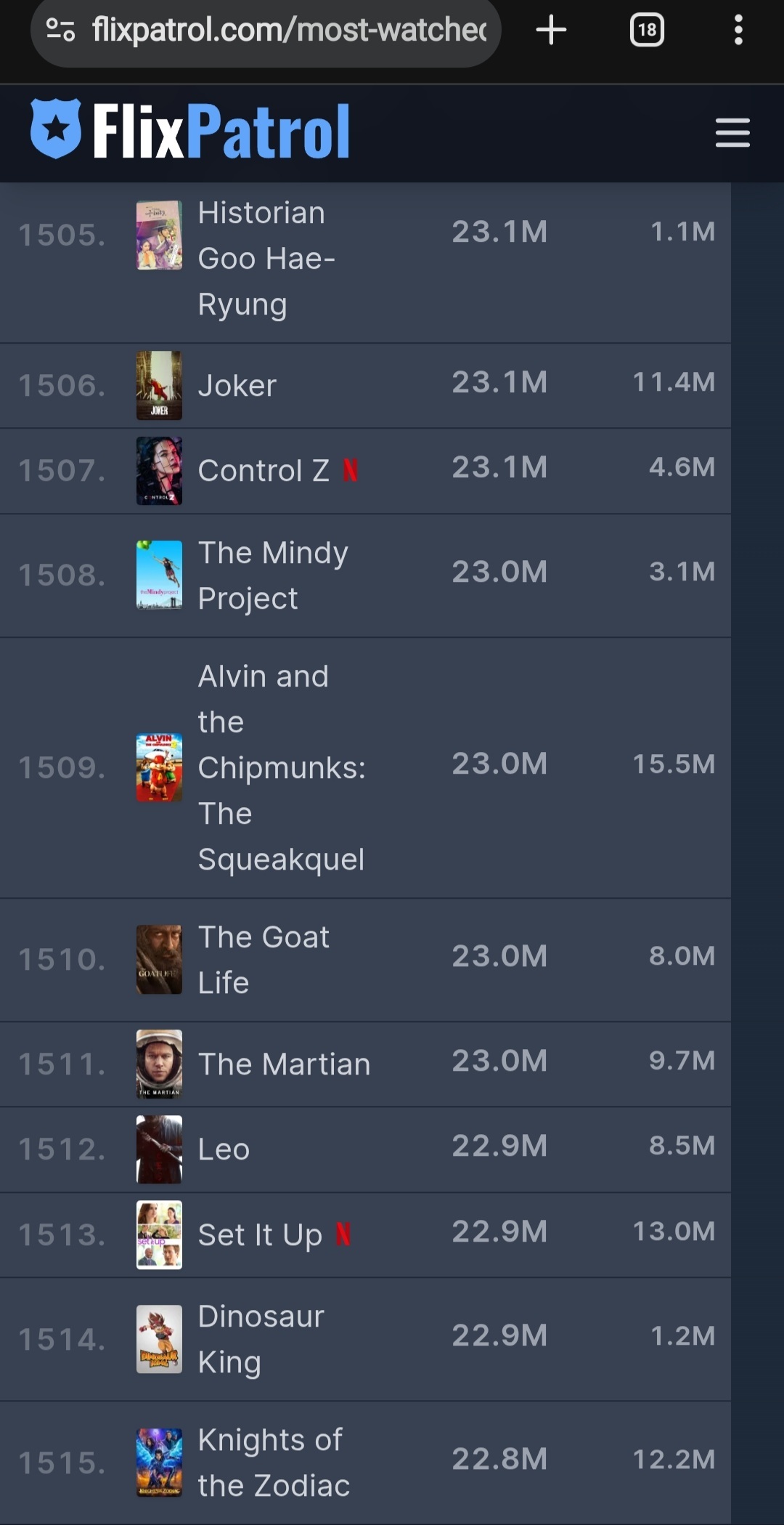 Oh tu sais je pourrais dire que sur 2024, ce truc est 1515e sur les films les plus vus, mais je suis pas sûr que ça puisse l'aider...  :trollface1