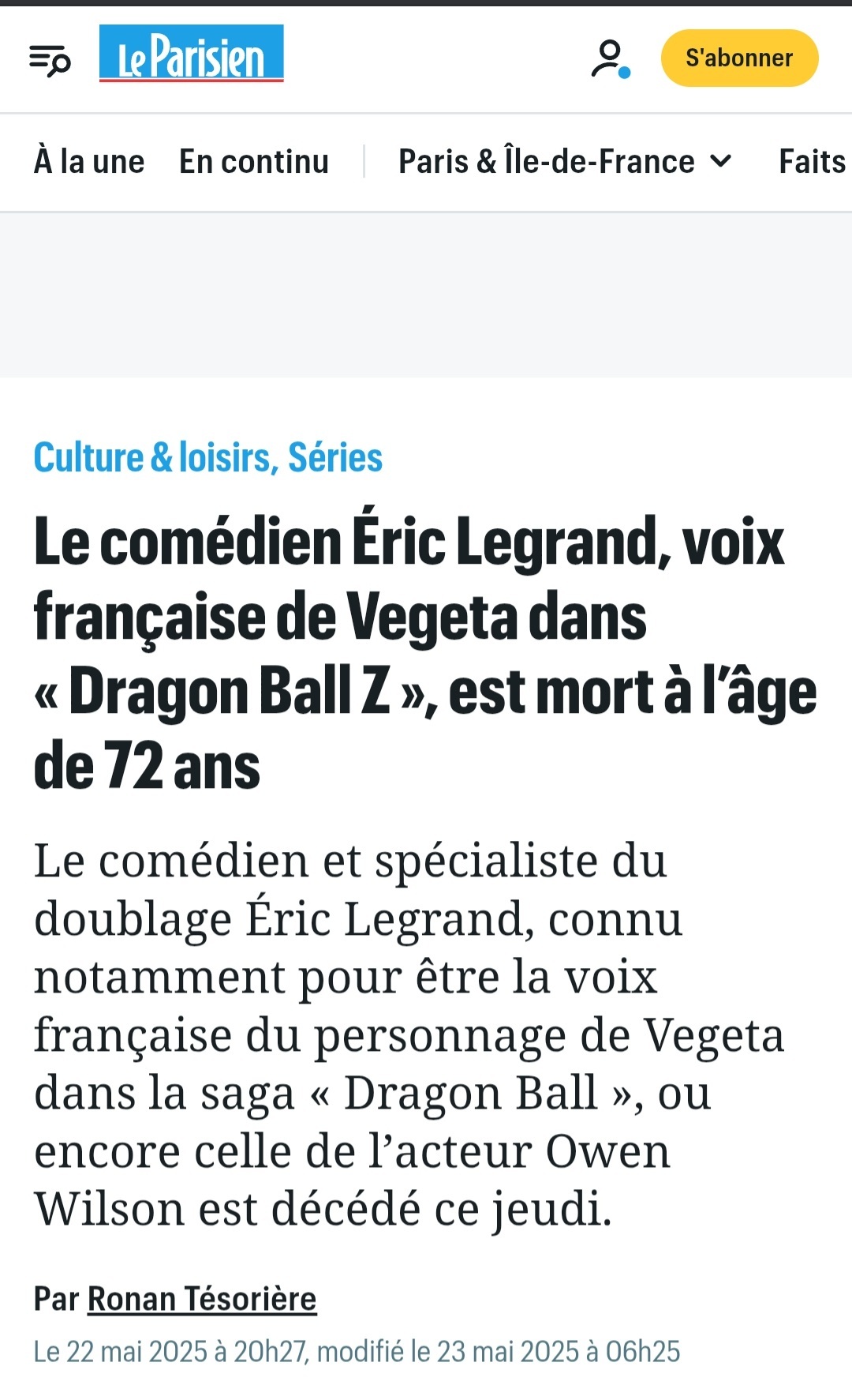 Adieu, Monsieur Legrand, vous fûtes un grand prince pour les Saiyans...