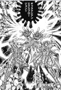 Certes en grand fan de Kurumada sama, Suda san veut faire un clin d'oeil à l'oeuvre d'orgine mais bon...
