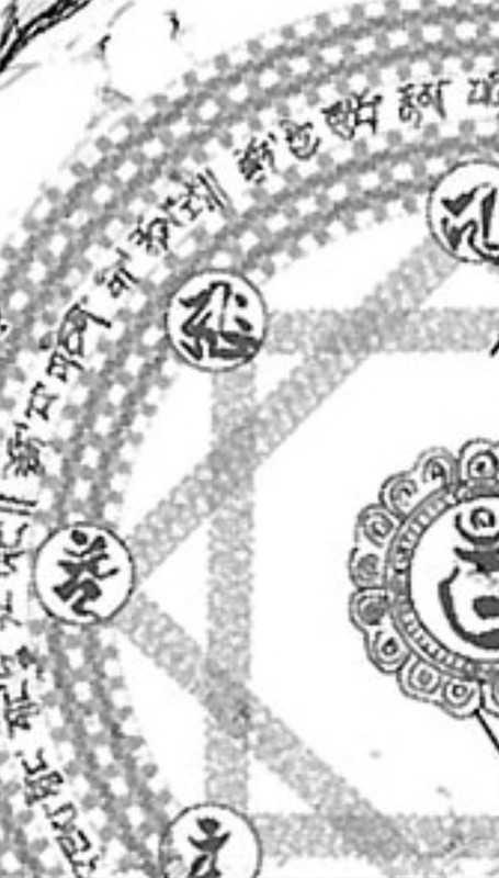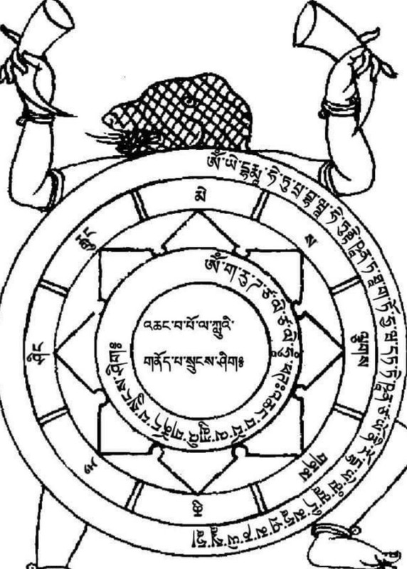 Le reverse m'a sorti moulte fois ce symbole mais pas les autres et pas le ruban de mantras hormis celui-ci :