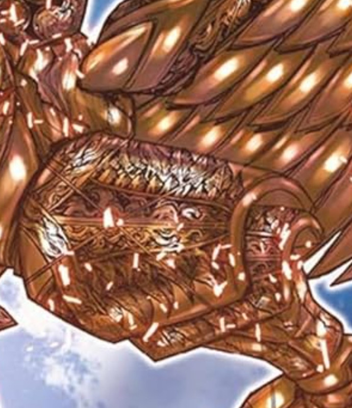 Visiblement Byaku n'arrive pas à deviner quelle pourrait être l'armure d'or avec des ailes.