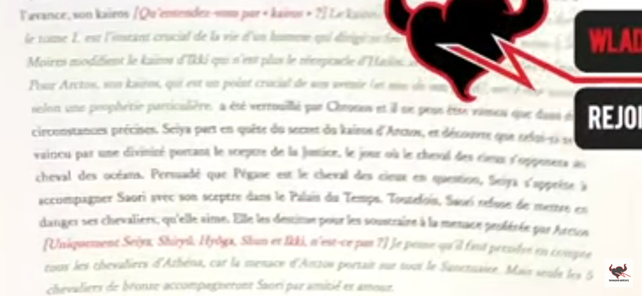 Je remarque que les questions/remarques en rouges de KurumadaPro sont assez concons.... "les quatres autres chevaliers qui viennent sans armures c'est émouvant et c'est un bon développement".... :onionsweat